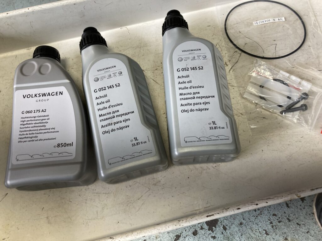 エンジンオイル、DSGオイルだけでなく前後トランスファオイル、ハルデックスも交換。