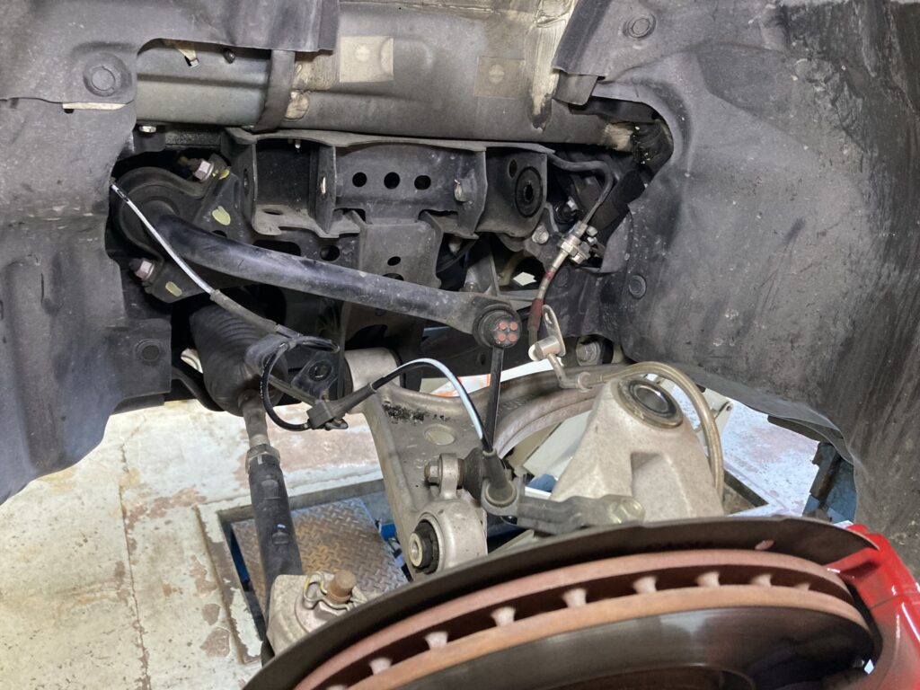 タイヤサイズもフロント215、リヤ235サイズの17インチですが、サーキットに通い始めるとリヤに対してフロントが負けている感じでタイヤショルダー部の摩耗も激しいのでサーキット向けに対策していきます。