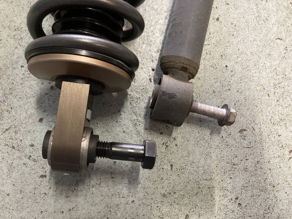 取り付けは今までショックしか付いていなかった箇所にスプリングが装着されるため、多少の加工と取り付けボルトの太さを変更して強化しています。