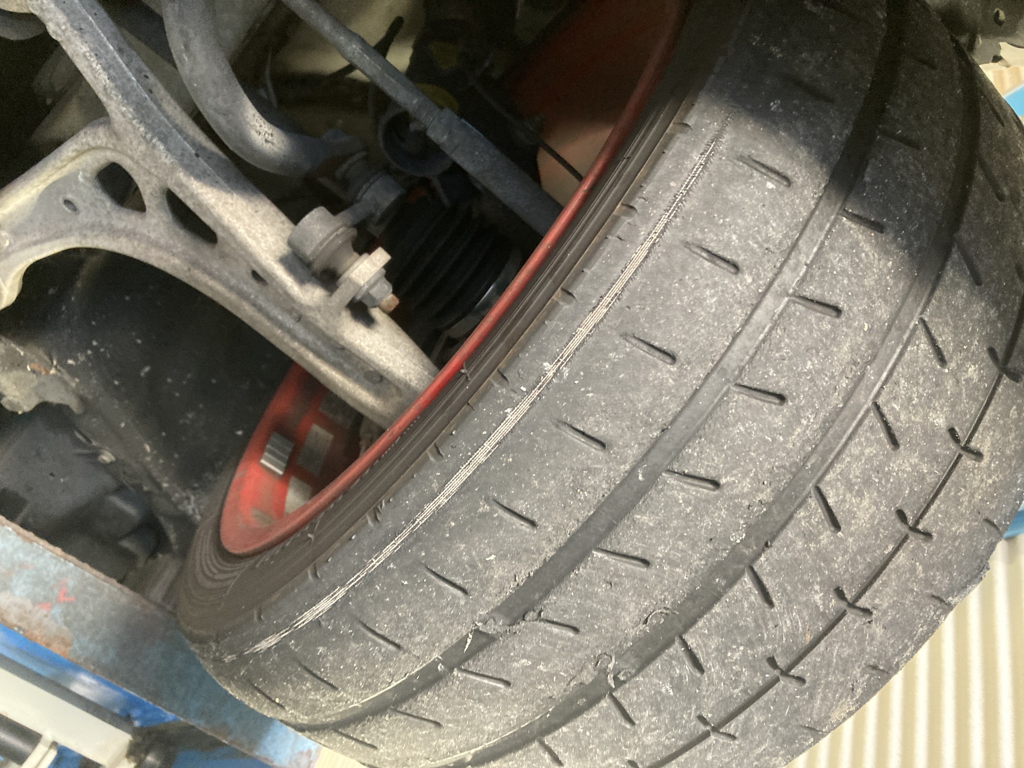 サーキット準備で来店のS4は見事にタイヤが終わってました。