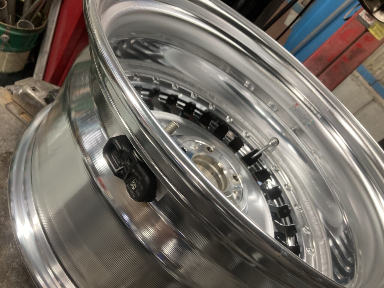 純正の空気圧センサーも移植してタイヤ組み付け。