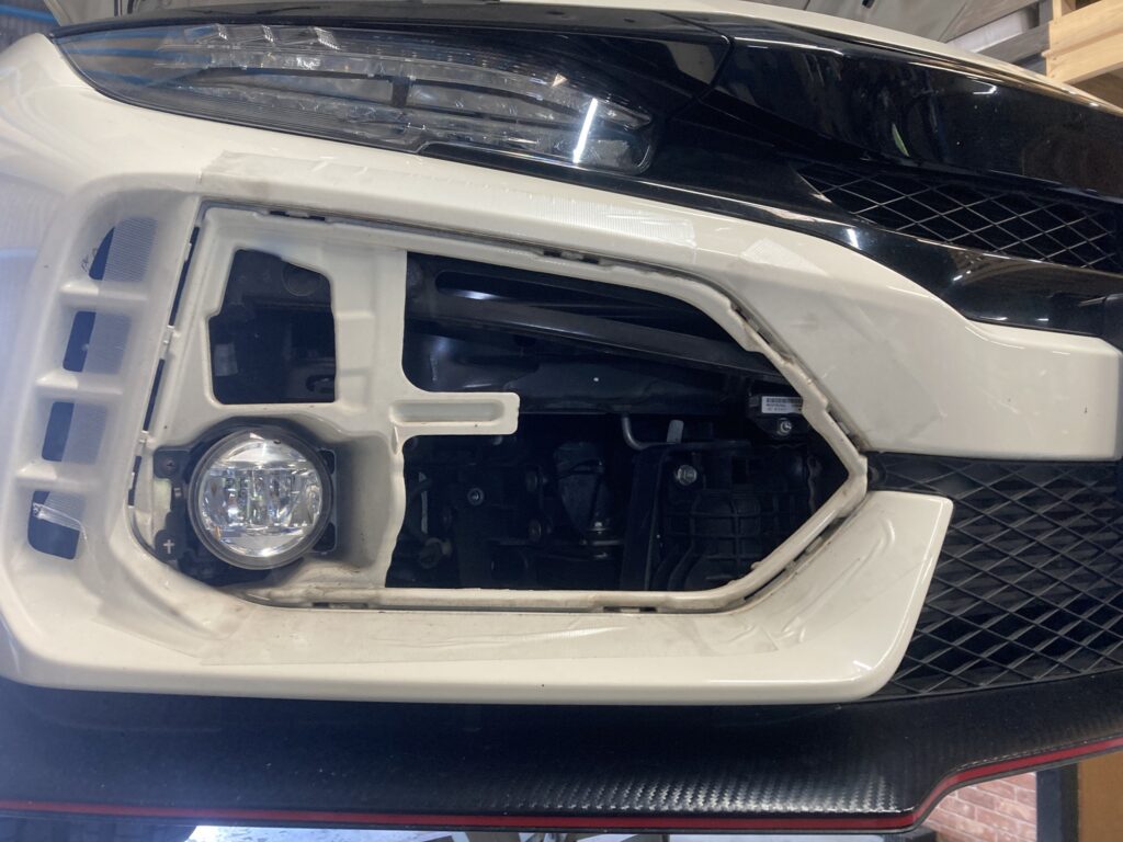 バンパーガーニッシュを外して、あとは現車合わせでステーを制作。