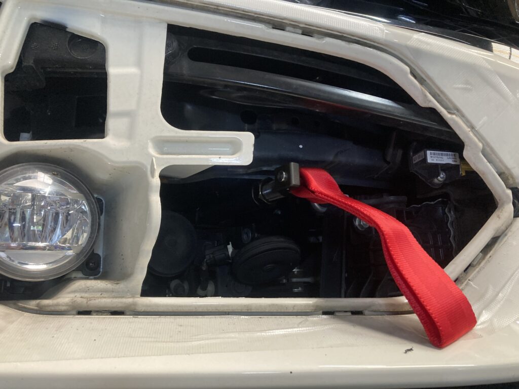 価格や在庫の問題から、汎用のトーイングストラップを取り付け。