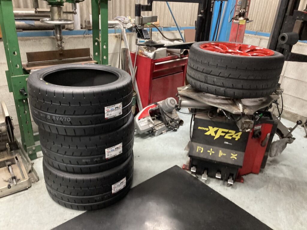 走行会参加者の車両もそうでない車両も、オイル交換にタイヤ交換などなど。
