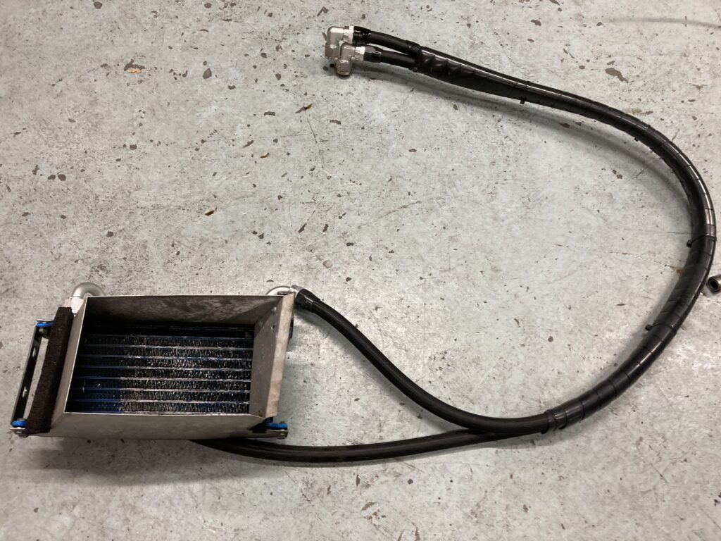 水没の影響で雨水が混ざっているであろうオイルクーラーも取り外して洗浄作業。