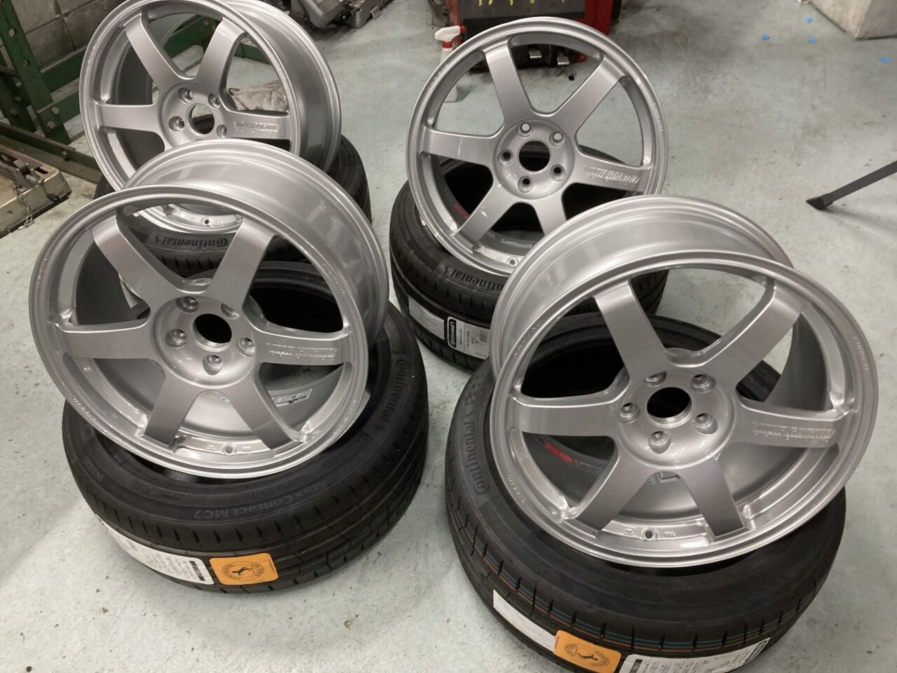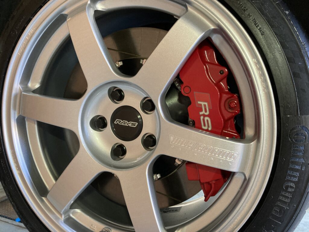 選択したホイールはTE37SAGAの特色カラー、ダイヤモンドシルバーにコンチネンタルタイヤの組み合わせ。