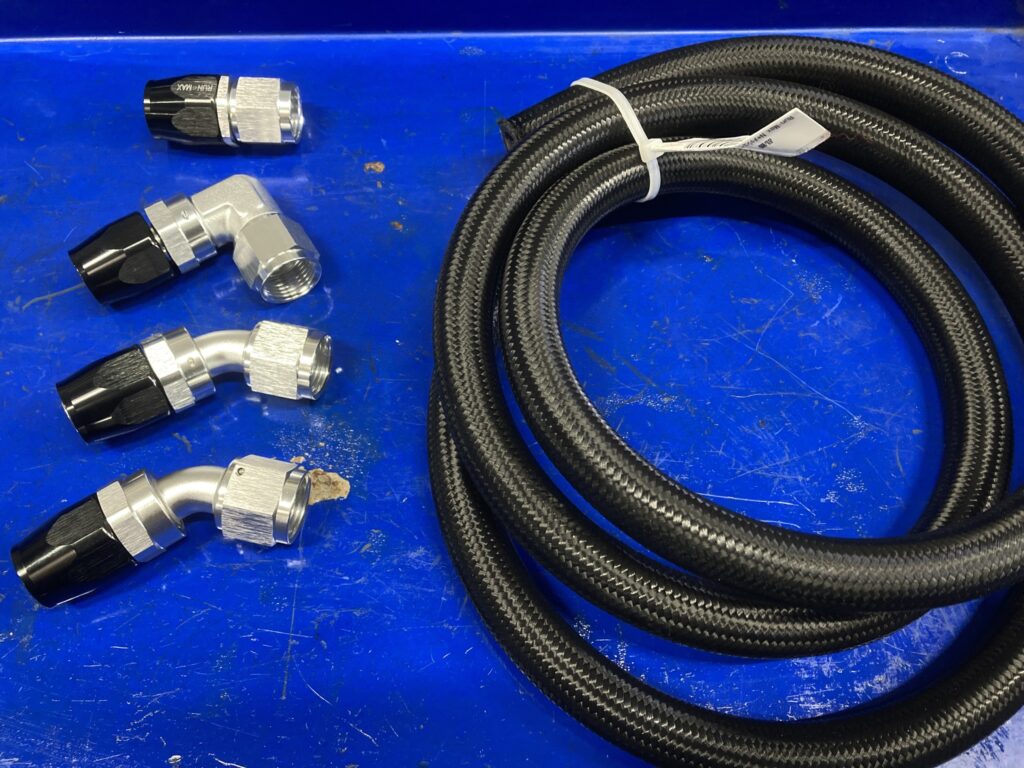 オイルクーラー用のホースとフィッティングが入荷したので、アクセラのオイルクーラーを完成させます。