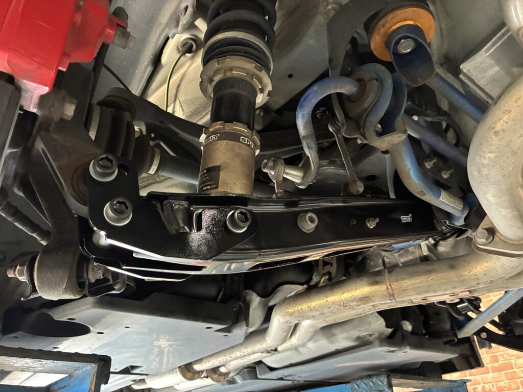 リヤはSTIリンクを装着。