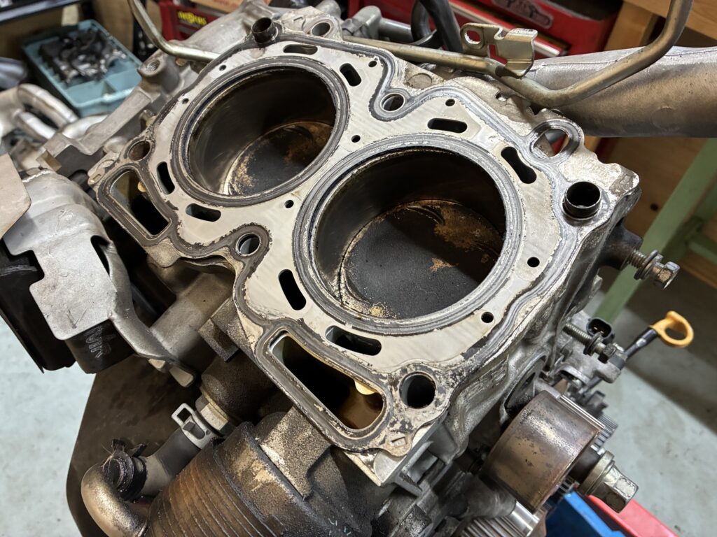 インプレッサはエンジンを降ろした後、異常のある右側ヘッドを外せばすぐに原因は判明。