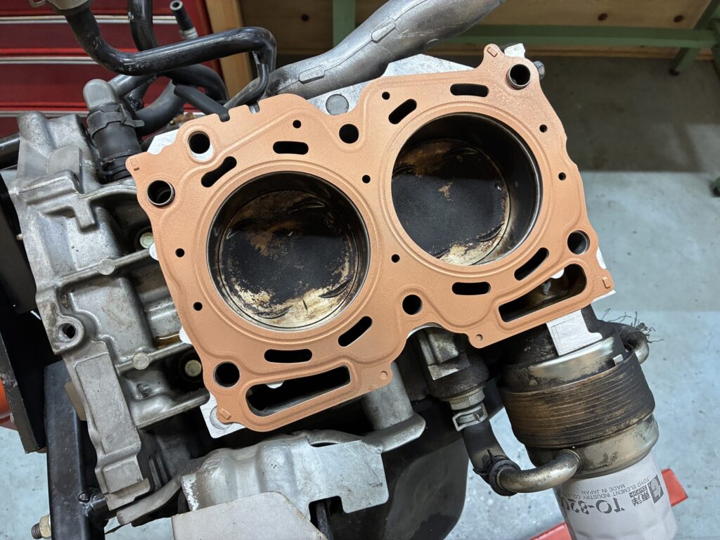 片側のみ面研するわけにもいかないのでヘッドガスケットにはカッパースプレーを吹いて組み付け。