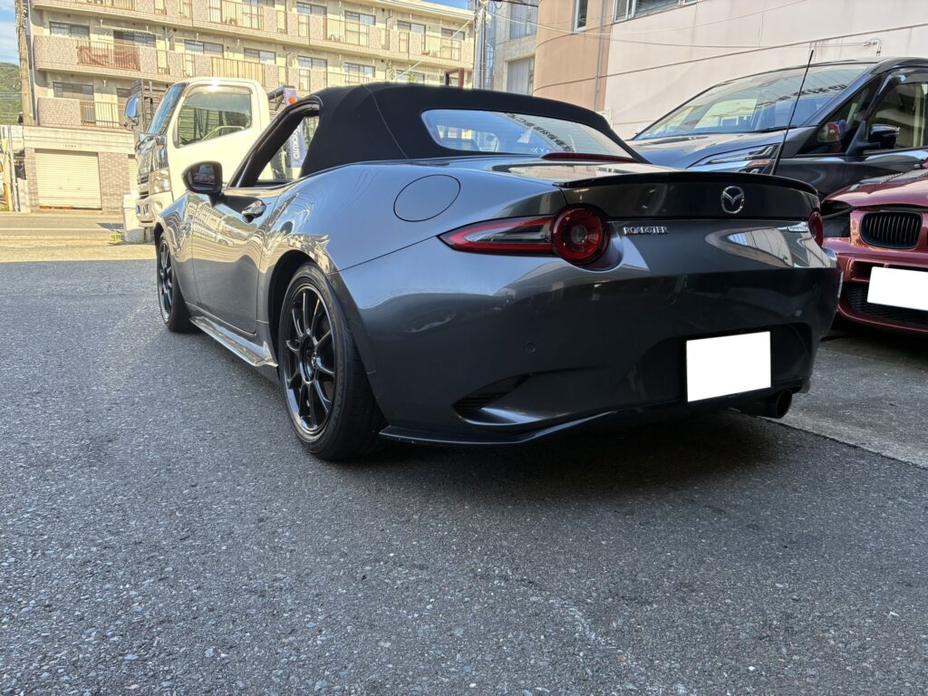 ロードスターの軽いボディにしなやかな動きでありながら路面からの入力をきちんと伝えてくれる足が理想的と考え、当店デモカーはオリジナルKONIショックにノーマルスプリングの組み合わせです。